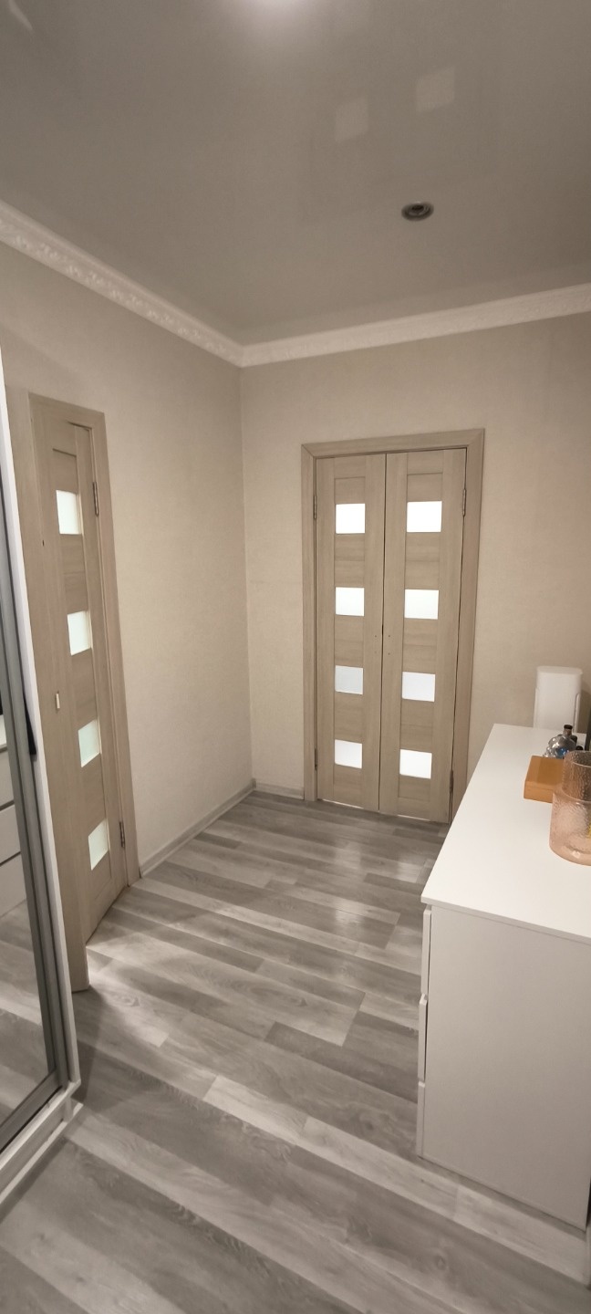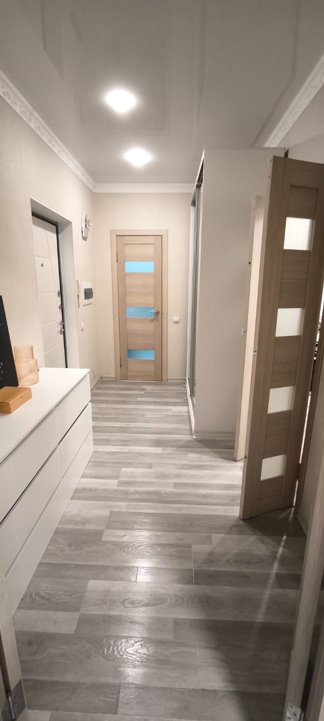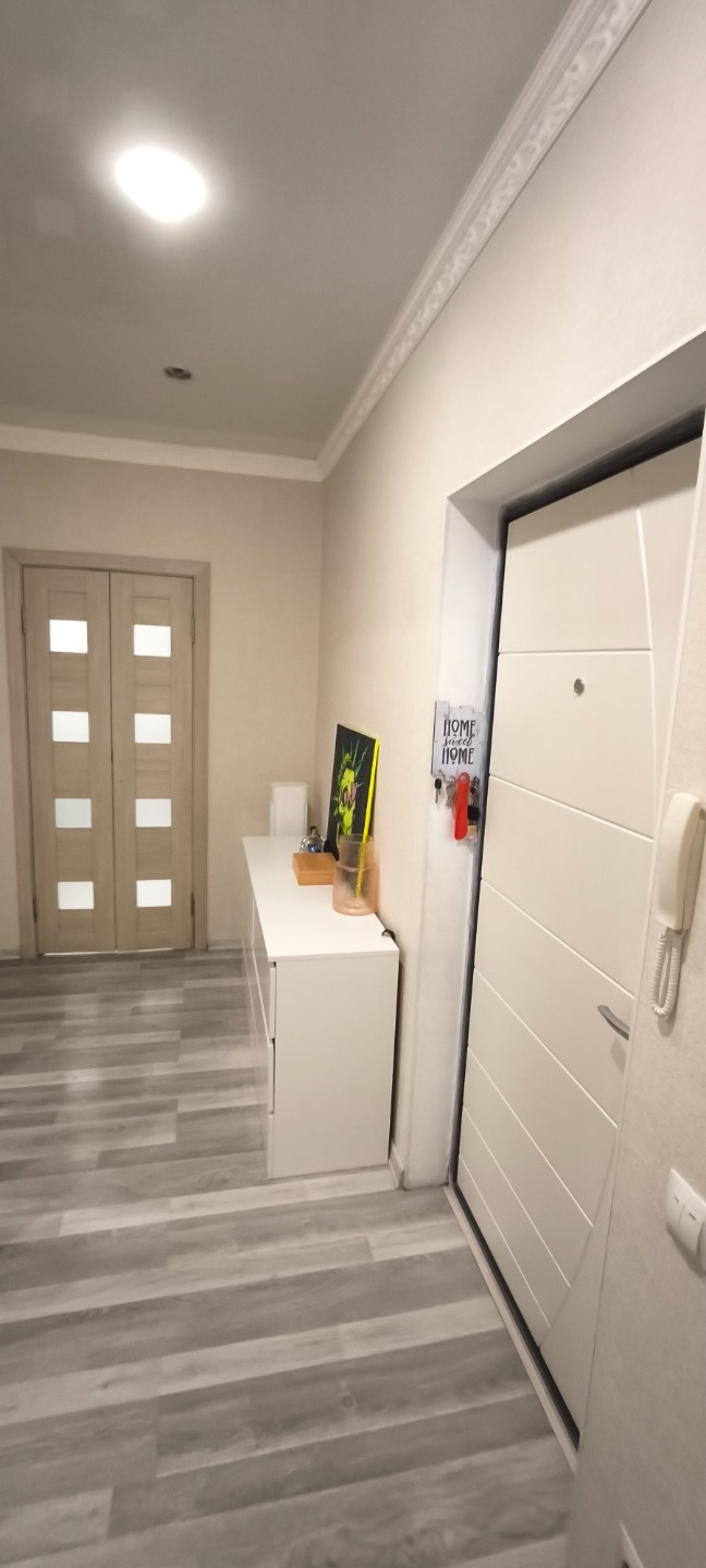 Уютнaя, тёплая, качественный ремонт. В коридоре шкафчик с замком и совместная кладовая.