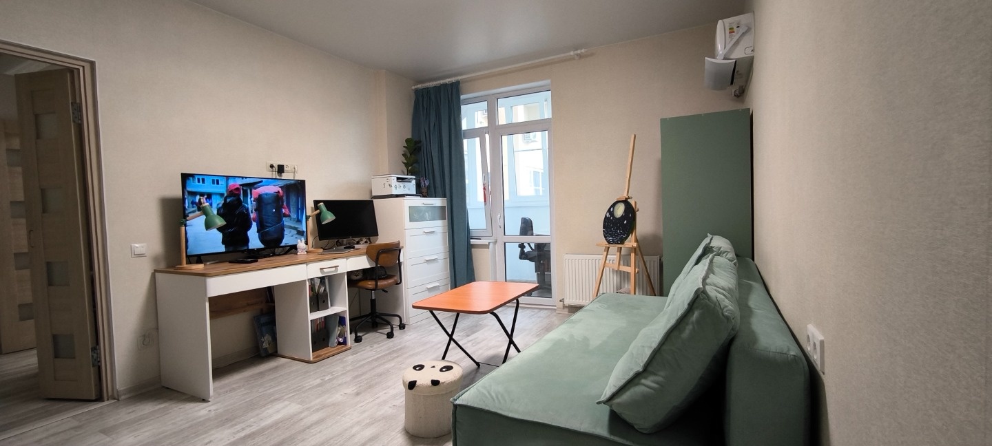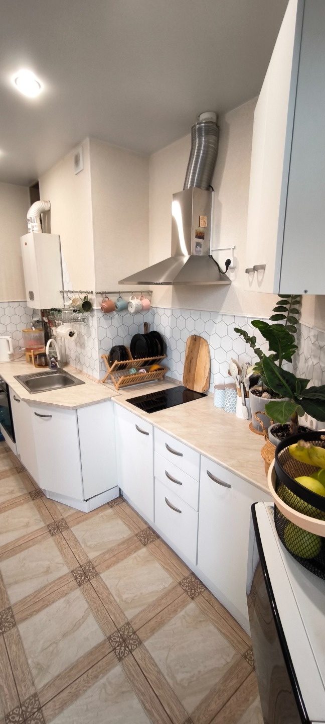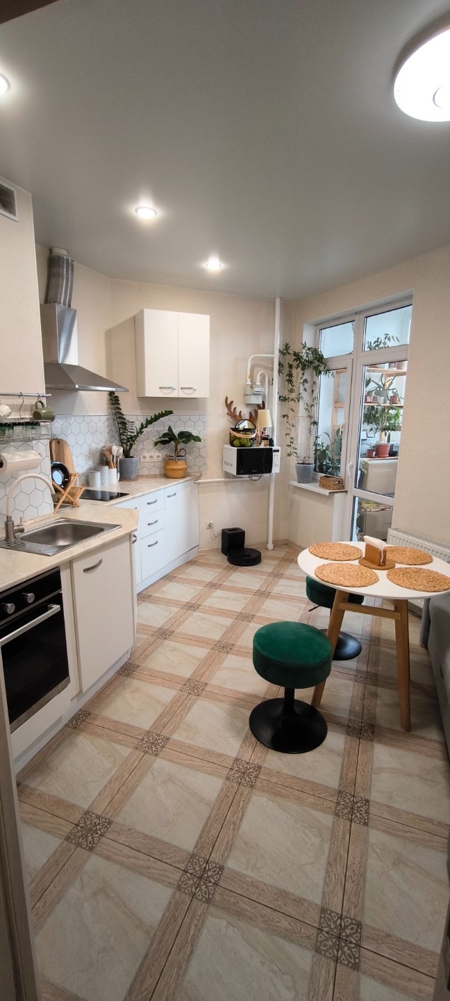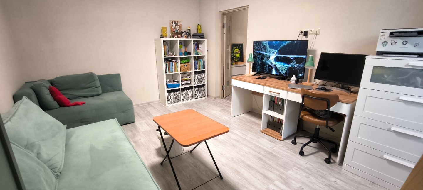 Уютнaя, тёплая, качественный ремонт. В коридоре шкафчик с замком и совместная кладовая.